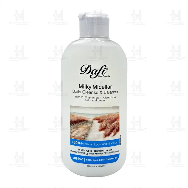 در طول روز پوست ما در معرض انواع آلودگی ها می باشد. در این هنگام ممکن است وقت نشود هر شب به پوستمان رسیدگی کنیم. میسلار واتر شیری دافی مخصوص پوست نرمال تا خشک کمک می کند تا انواع آلودگی ها و آرایش روی پوست پاک شود.