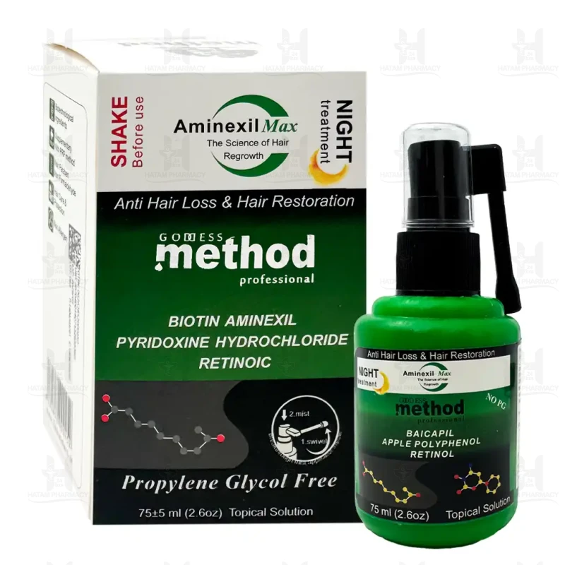 لوسیون ضد ریزش مو شب متد، تقویت کننده موهای دارای ریزش مخصوص شب است. این لوسیون برای تقویت و رشد مو و جلوگیری از ریزش مو بسیار موثر است. این محصول به تقویت پیاز مو کمک بسیاری می کند. همچنین باعث تقویت فولیکول مو و بازسازی ریشه ها و ساقه مو می شود.
