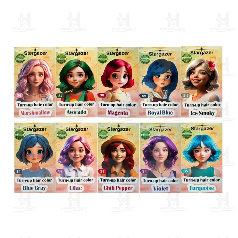رنگ فانتزی شامپویی استارگیزر در 10 رنگ متفاوت، آبی نقره ایی(S1)، یاسی(S2)، قرمز فلفلی(S3)، بنفش(S4)، آبی فیروزه ای(S5)، صورتی مارشمالویی(S6)، سبز آووکادویی(S7)، سرخابی(S8)، سرمه ای(S9)، دودی یخی(10) موجود می باشد.