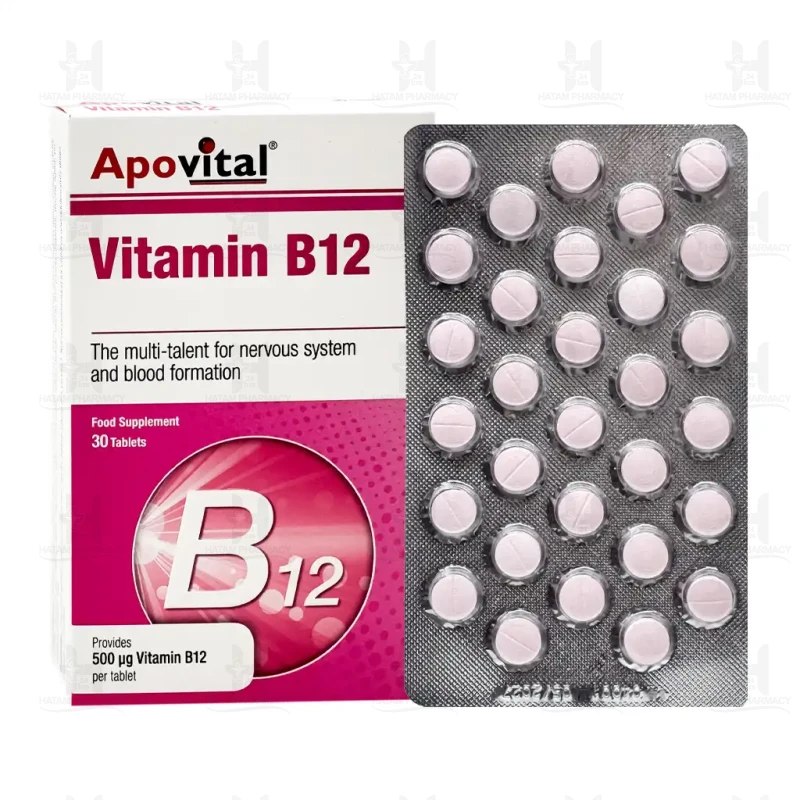 قرص ویتامین B12 آپوویتال عملکرد طبیعی سلولهای عصبی را تنظیم میکند. ویتامین B12 یا سیانوکبالامین برای متابولیسم طبیعی تمام سلولهای بدن و افزایش سطح انرژی ضروری است. این ویتامین در سنتز DNA و ساخت گلبولهای قرمز نقشی مهمی دارد، به همین دلیل در نتیجه کمبود آن تقسیم سلولی به دلیل توقف ساخته شدن DNA مختل شده و کم خونی مگالوبلاستیک ایجاد میشود.